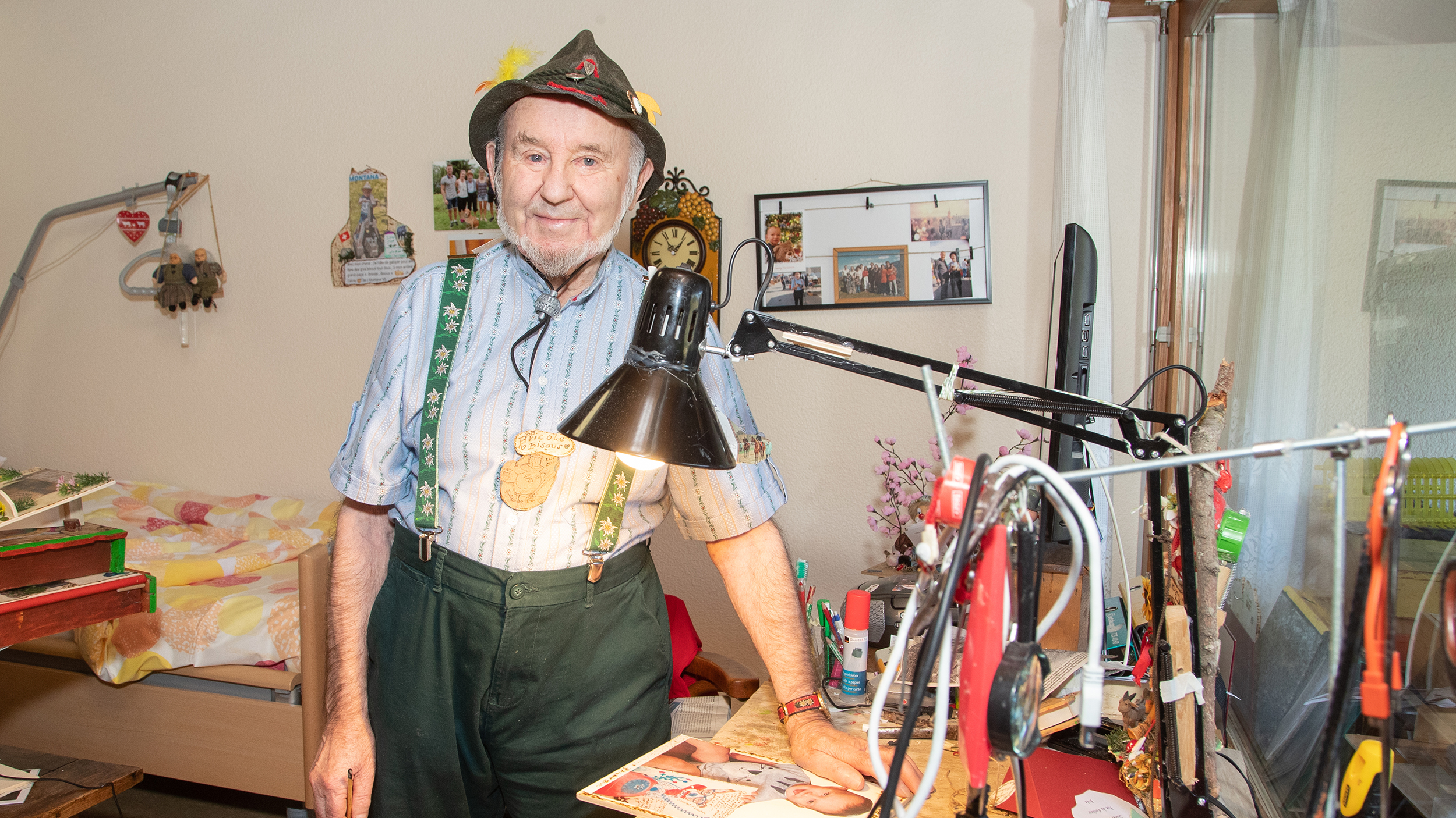 Gilbert Clivaz réside au Christ-Roi depuis plus de dix ans où il égaie le Foyer de sa bonne humeur et de ses innombrables créations.